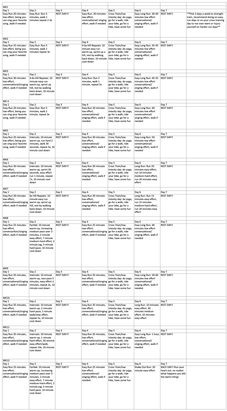 Sample 5K Running Plan As a thank you for visiting PRS please check out this 12 week sample 5K running plan! CONTACT Name * First Name Last Name Email * Subject * Message * Thank you!
